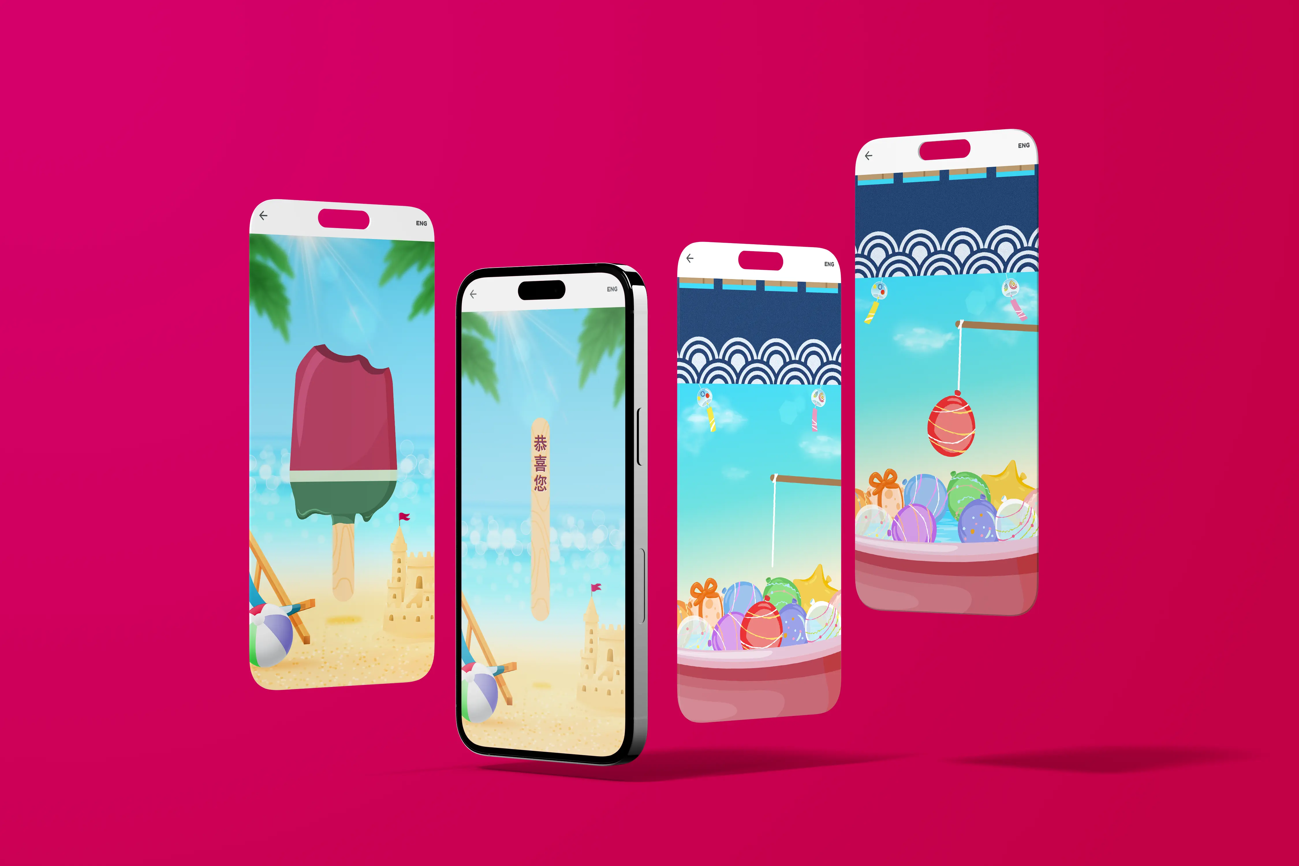 As a simple interactive web game for the summer luckydraw reskin annually, the mechanism was a single-action approach. This year's theme is summer joy, but the mechanism changed from single touch to time limit with three prize tiers, resulting in several version changes in creatives, "summer" and "single-action" made the creatives challenging to deliver every turnaround.